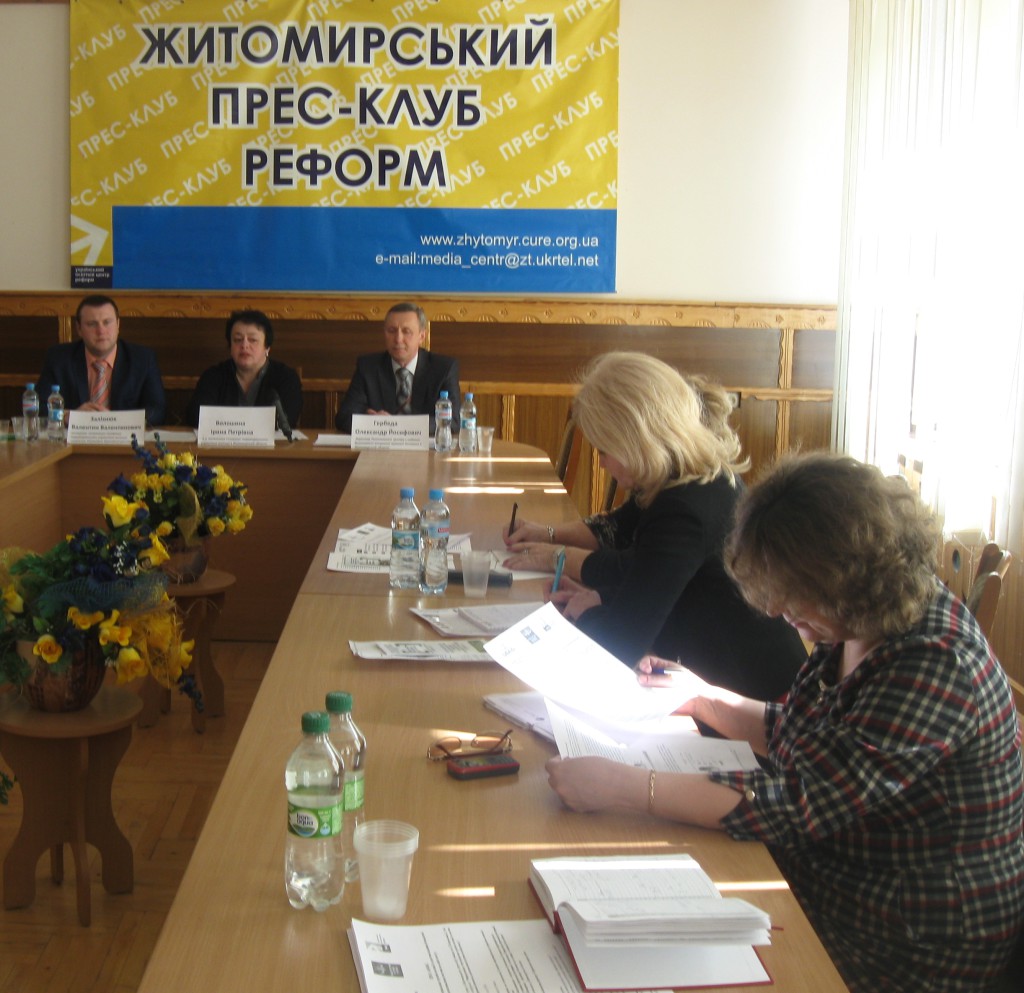 У Житомирському прес-клубі 16 березня в рамках інформаційної кампанії проекту USAID «Справедливе правосуддя» відбулася прес-конференція “Реформування територіальних органів юстиції та